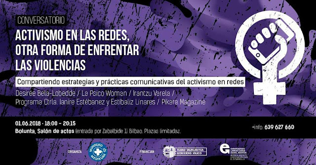 Ekainaren 1ean, ostirala, «Sareetan burutzen den aktibismoa, bortizkerien aurka ekiteko beste era bati buruzko solasaldia», bertan aktibistekin partekatu eta hitz egiteko aukera izango dugu.