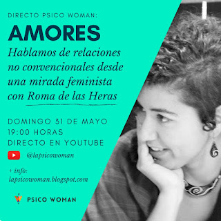 Este domingo 31 de Mayo a las 19h desde el Canal de Youtube (pincha aquí para que te avise cuando empiece https://www.youtube.com/watch?v=20Up1mqOoF8 ) hablamos con Roma de las Heras sobre AMOR(ES) / relaciones no convencionales desde una perspectiva feminista.